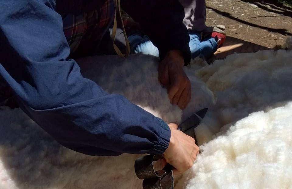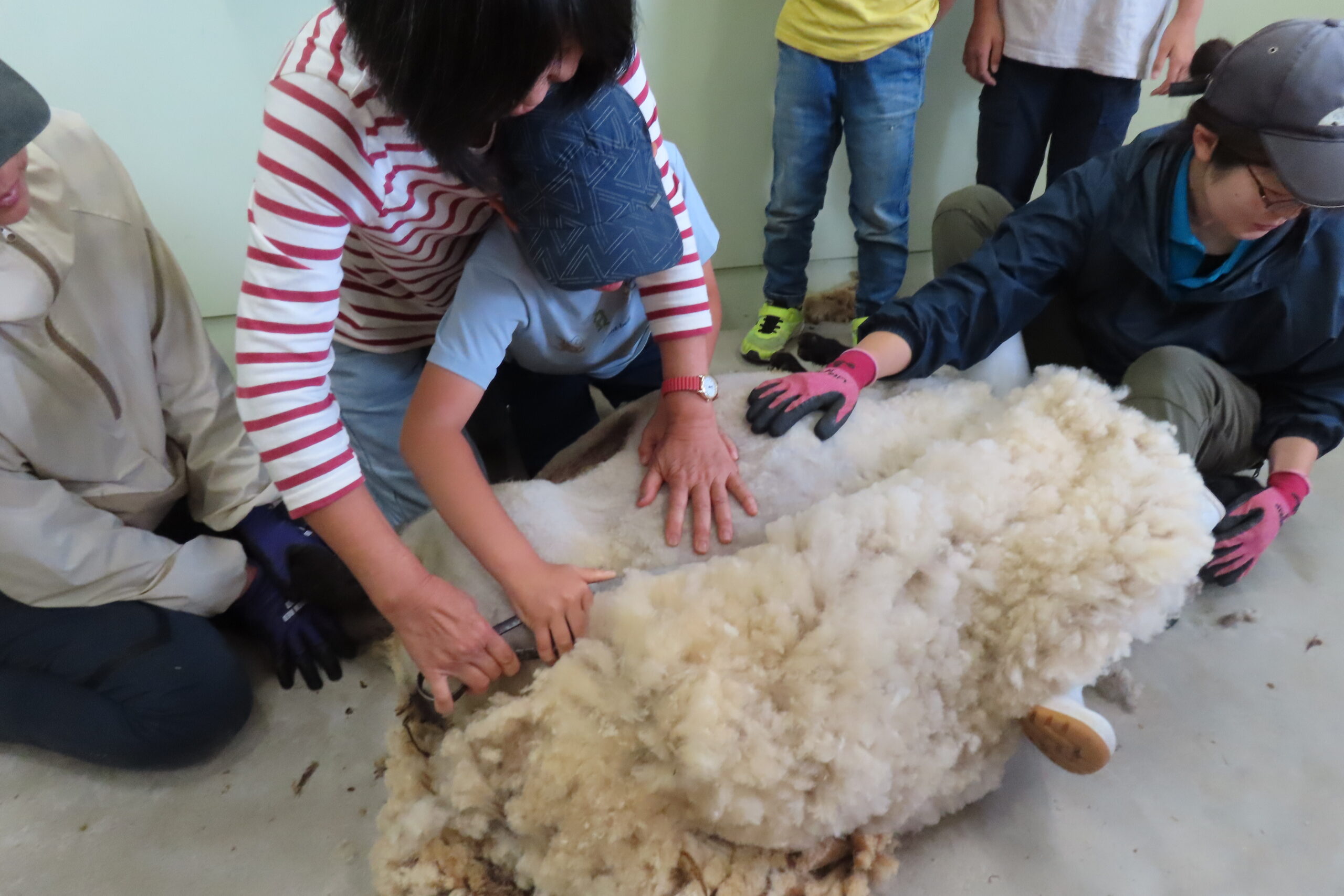 実は・・・子どもたちに内緒で、その一週間前にクラスのお母さんたち数人で、同じ牧場で毛刈りの体験をしました。子どもたちと同じ体験ができるなんて楽しみ!私も羊の毛刈りは初めてです。横たわる羊さんに(マロンちゃんという名前でした)、少しビクビクしながらも毛をはさみで切り、少し慣れてくると、ザクザクと切れるようになりました。
