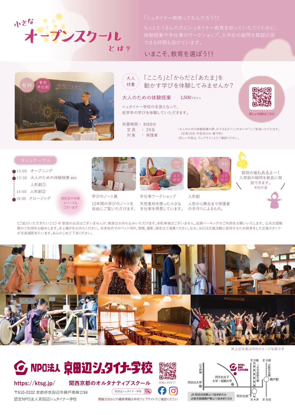 ※「大人のための体験授業」「にじのおへや」は有料・事前申込制になっております