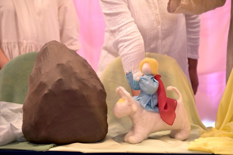 人形から舞台まで手作りしている保護者による人形劇をお楽しみください。