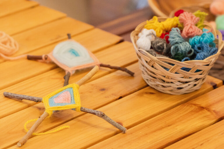 保護者によるワークショップです。羊毛や草木染めの毛糸など の天然素材を使って一緒に手を動かしましょう。お子さまと一緒にお楽しみいただけます。